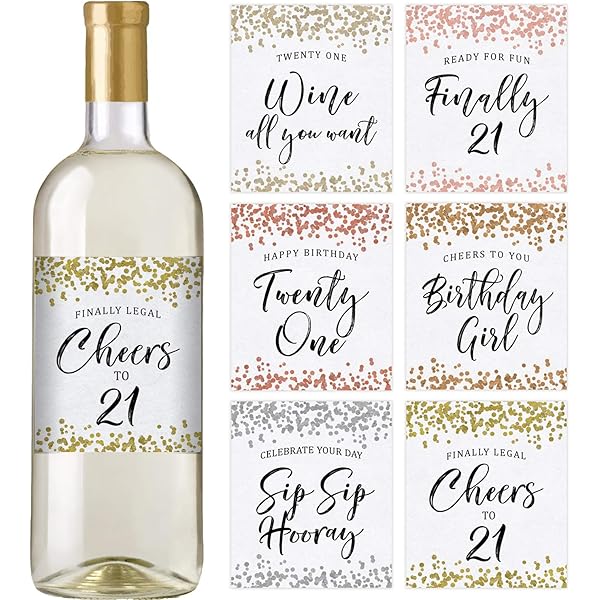 Amazon Com 21st Surprise Birthday Party Gift Ideas Decorations Mini Champagne Mini Wine Bottle Labels 20 Count Golden Decals Celebrate 21 Years Old Sister Girlfriend Dorm Roommate Twenty One Legal Handmade